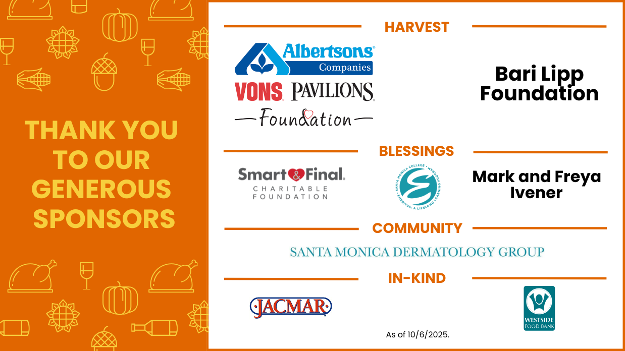 Now in its 9th year, GIVING THANKS(giving) brings joy and relief to over 2,400 SMC students in need, by providing them with fresh holiday groceries. This flagship event also raises critical funds for the Basic Needs Program and Emergency Grant Fund, which offer year-round support to students facing basic needs challenges.